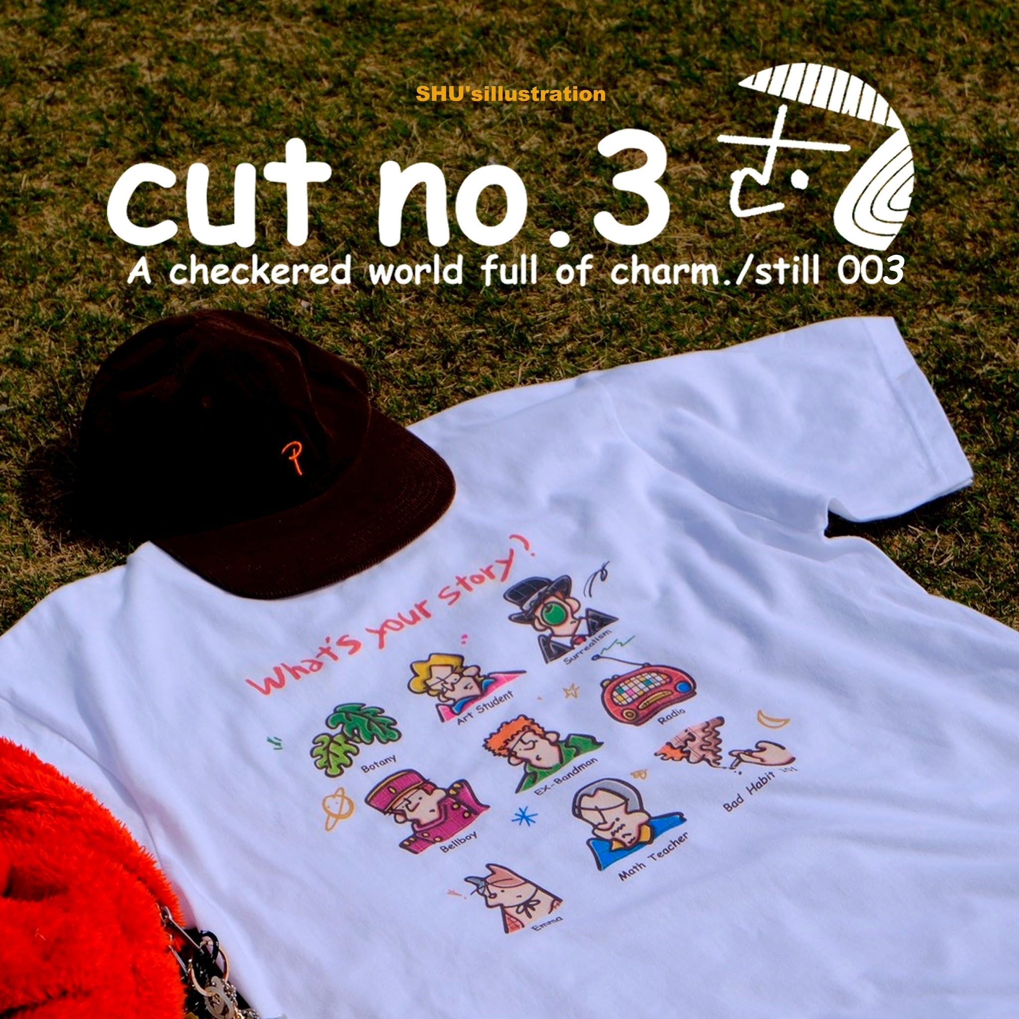 "what's your story?" 男女問わず着やすいデザインです! SHUのキャラクターたちを詰め込んだ一枚! 毎日のコーデにちょっとした遊び心を。 size : S/M/L 綿100% 綿糸縫製 190g/㎡(5.6oz) 17/-天竺